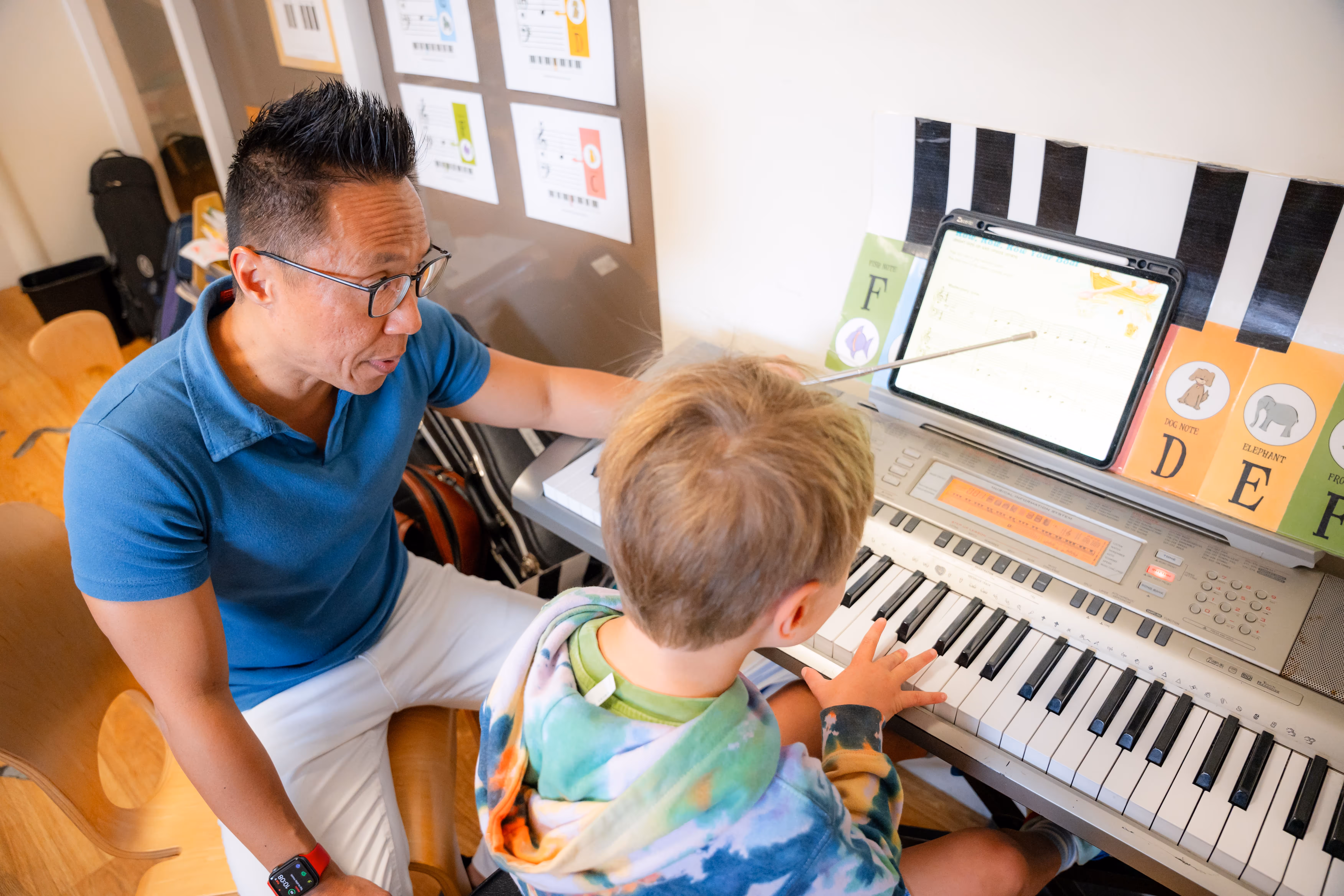 Daily music lessons are a cornerstone of our program. Children ages 3 and older participate in small-group piano or violin lessons, while infants and toddlers engage in music and movement programming. We also incorporate daily story time and art exploration to foster creativity and expression.